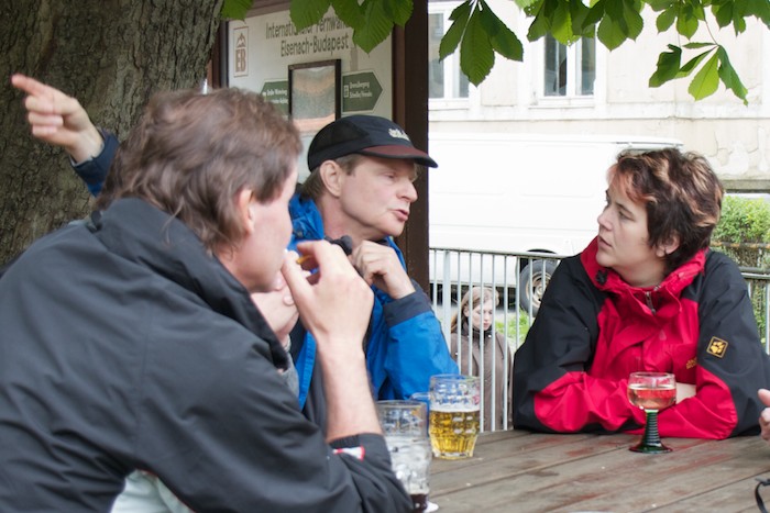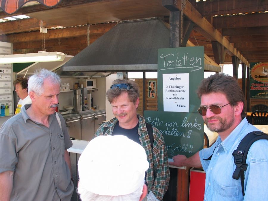 Anreise war wie immer am Mittwoch. Bevor die anderen kamen, machte ich einen kleinen Stadtrundgang (Bild 1-3). Nach und nach trafen alle ein, und wir versammelten uns im Hotel am Schlossberg auf dem Freisitz. Es war ein herrlicher Frühlingsabend, Freisitz mit Saaleblick, Sonne… Aber seht selbst (und erinnert euch):