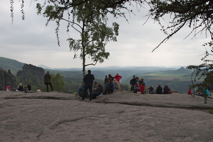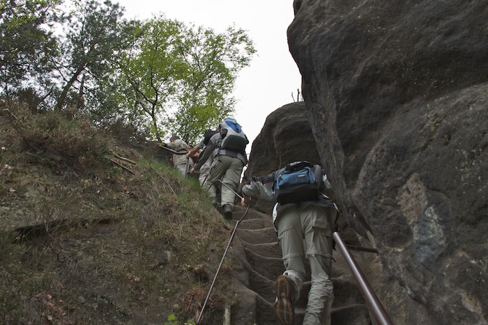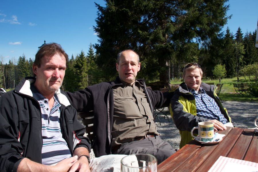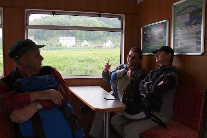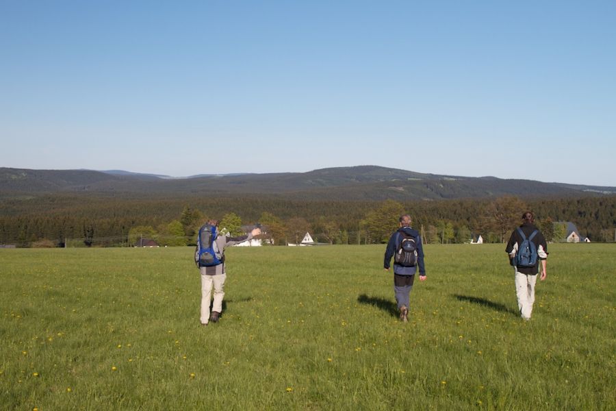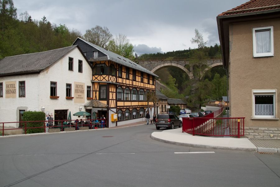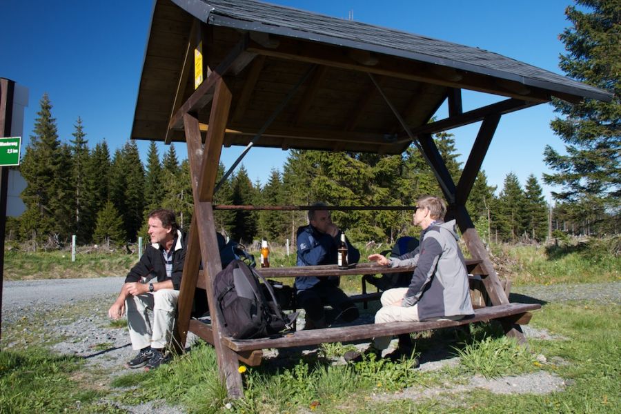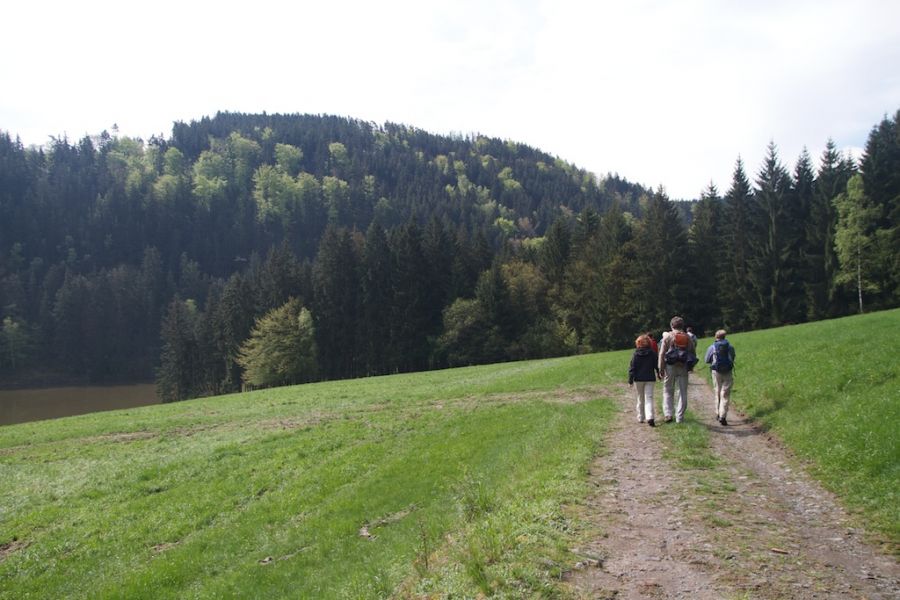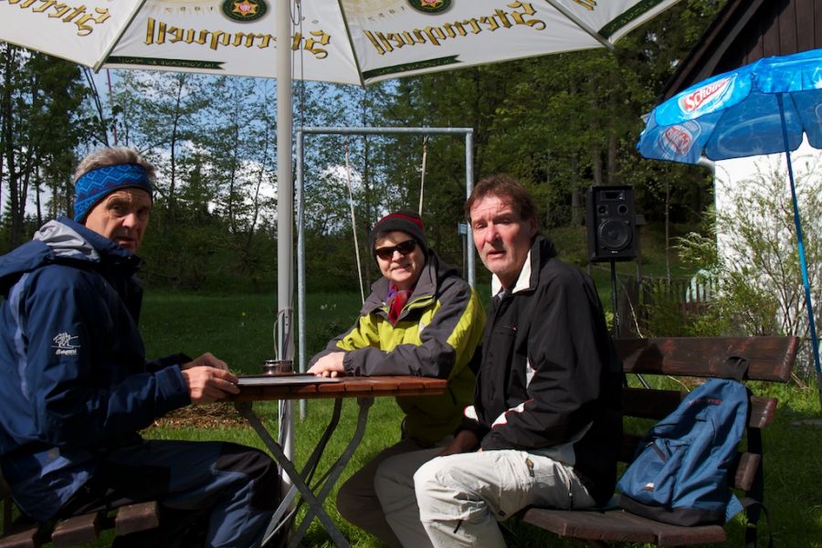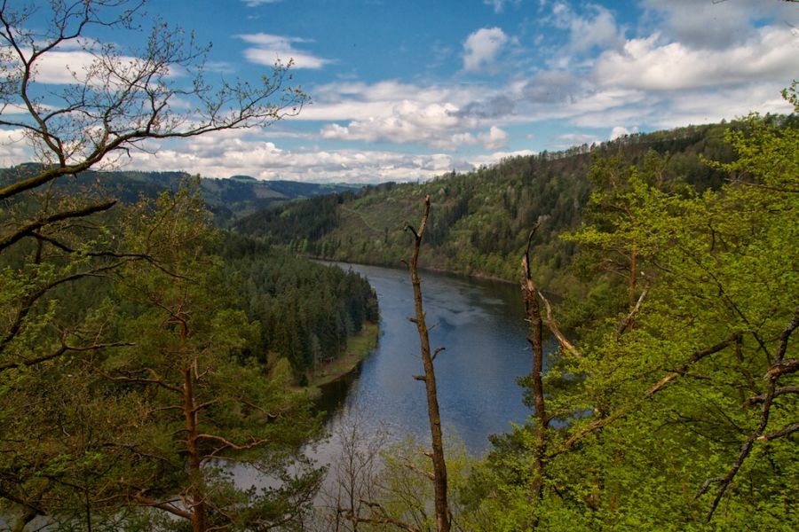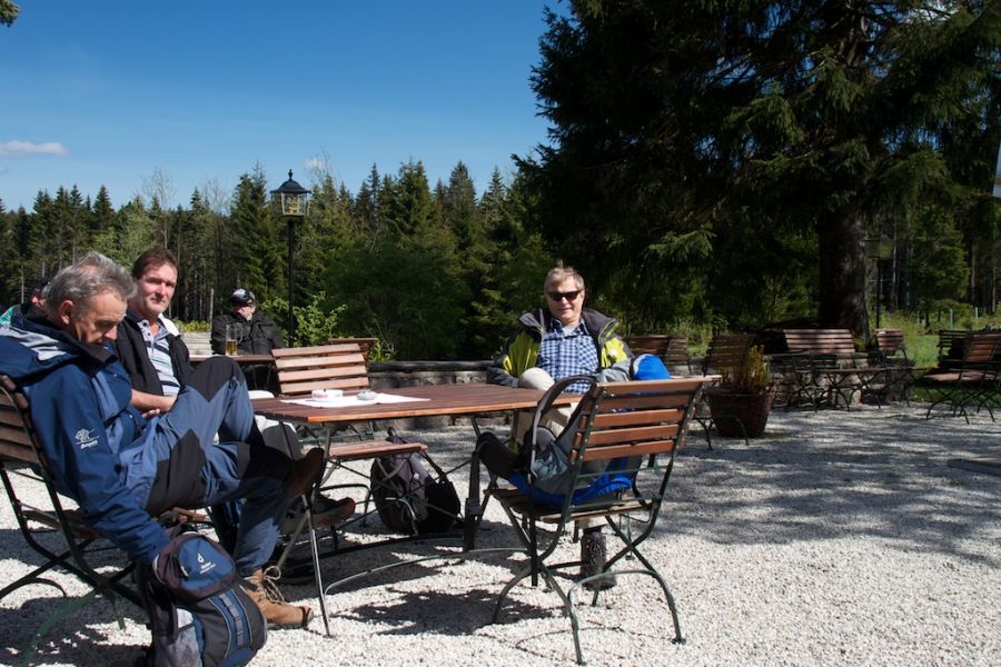 Himmelfahrt ging es bei Zeiten, begleitet noch von leichtem Nieselregen, los. Die Luft war feucht, Nebel lag über der Saale. Die Wanderung führte rechts der Hohenwartetalsperre durch ländliches Idyll. Wiesen und Wald, immer wieder mit schöner Sicht auf das Wasser. Schönster Ausblick von der Teufelskanzel. An der Linkenmühle war Mittagspause angesagt. Dies galt auch für hunderte andere. Ein DJ, der die Szenerie ordentlich mit Stimmungsmusik beschallte, sorgte dafür, dass man sich auf’s Essen konzentrierte und sich eher nicht unterhielt.